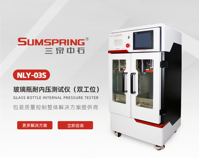 NLY-03S玻璃瓶耐内压测试仪(双工位)适用于各种啤酒瓶、酒瓶、饮料瓶、输液瓶、抗生素瓶等各类玻璃瓶耐内压力和爆瓶测试。满足通过实验、递增实验、破坏实验等多种实验功能,是玻璃瓶生产企业、制药机厂、食品企业、检测机构的常用检测仪器。