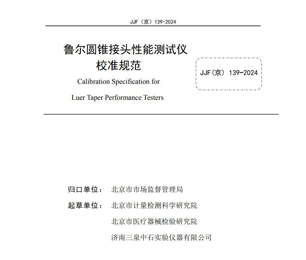 三泉中石参与起草的《鲁尔圆锥接头性能测试仪校准规范》开始实施